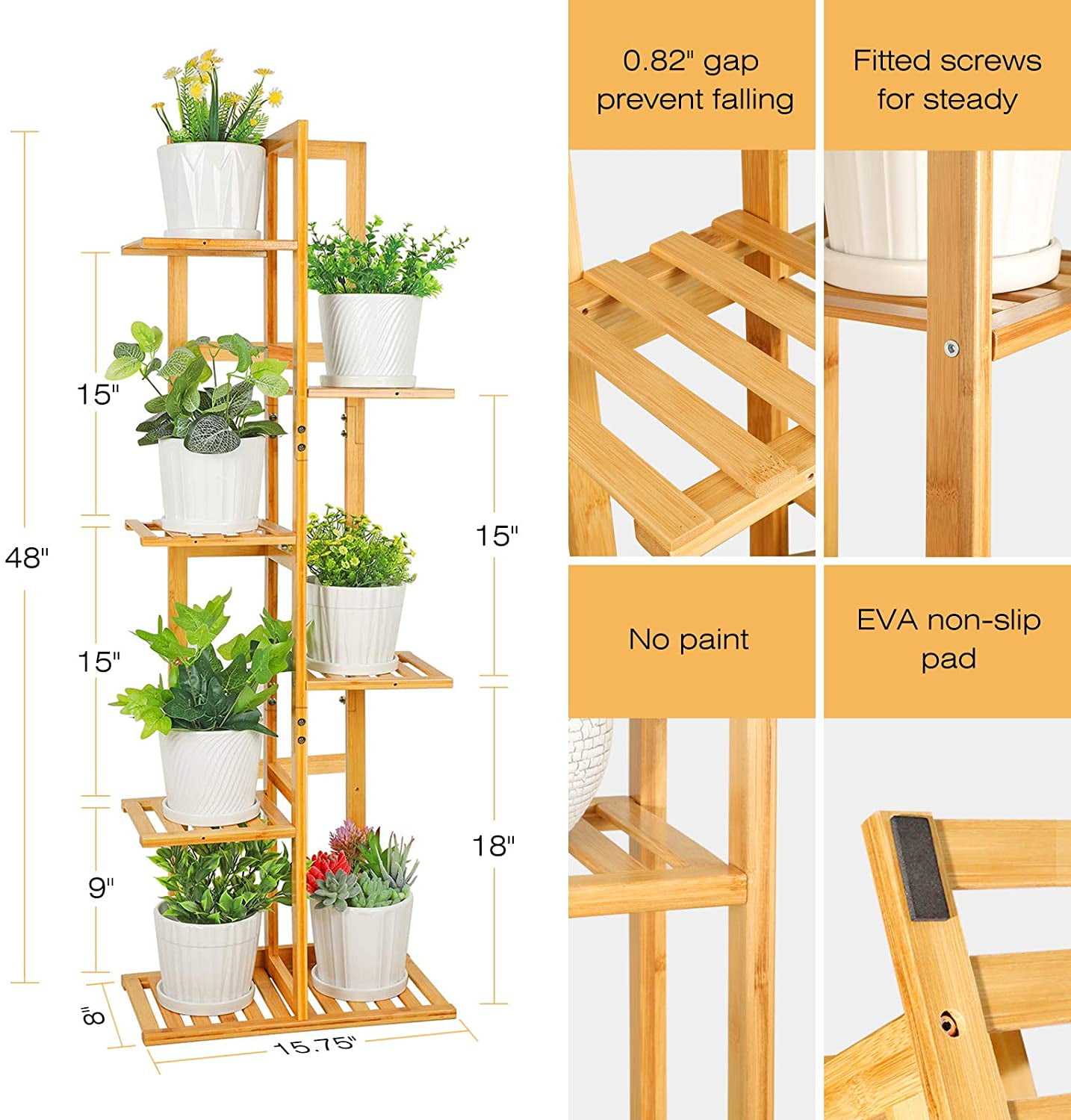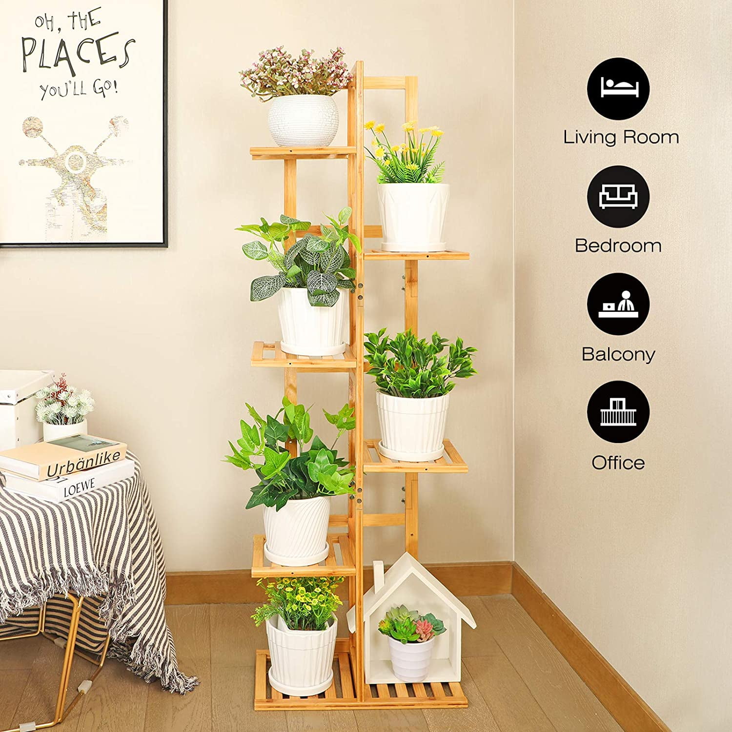Amazon Com Bamboo Plant Stand Rack Indoor Outdoor Plant Stand 6 Tier 7 Potted Multiple Flower Planter Pot Holder Shelf Rack Display For Patio Garden Corner Balcony Living Room Patio