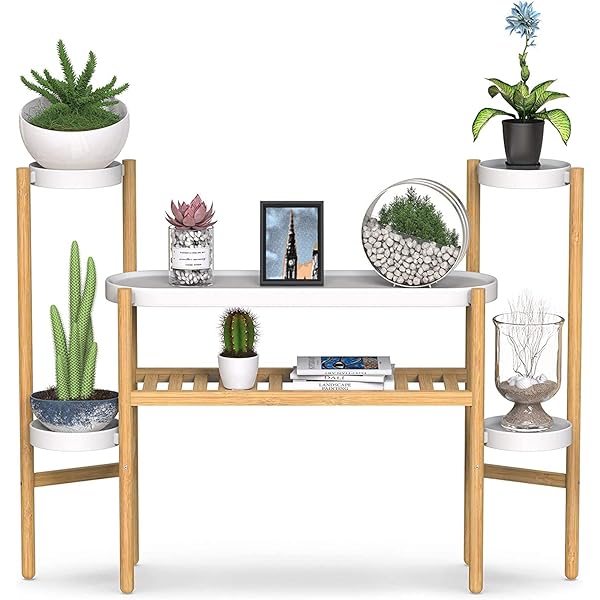 Amazon Com Unho Tiered Bamboo Plant Stand Potted Flower Display Rack Multilayer Storage Holder Shelf Indoor For Garden Patio Balcony Living Room Decor Patio Lawn Garden